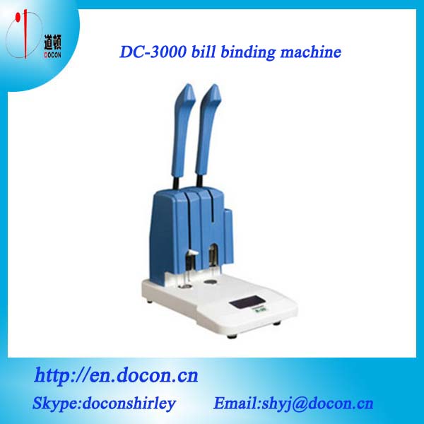 DC-3000manually thermal punching and binding machine, The model is widely used in financial institutes, government departments, Archives Bureau, files departments of hospitals, and the binding of accounting files, bills, archives, documents and materials in enterprises (especially for the binding of files with many attached bills and with irregular shapes)